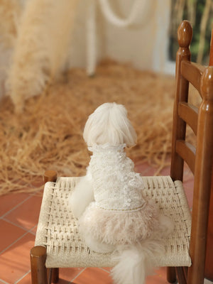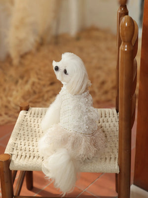 Fleur Bijou Dress – Tweed Princess Dog Dress with Floral Pearl Details for Small Dogs
