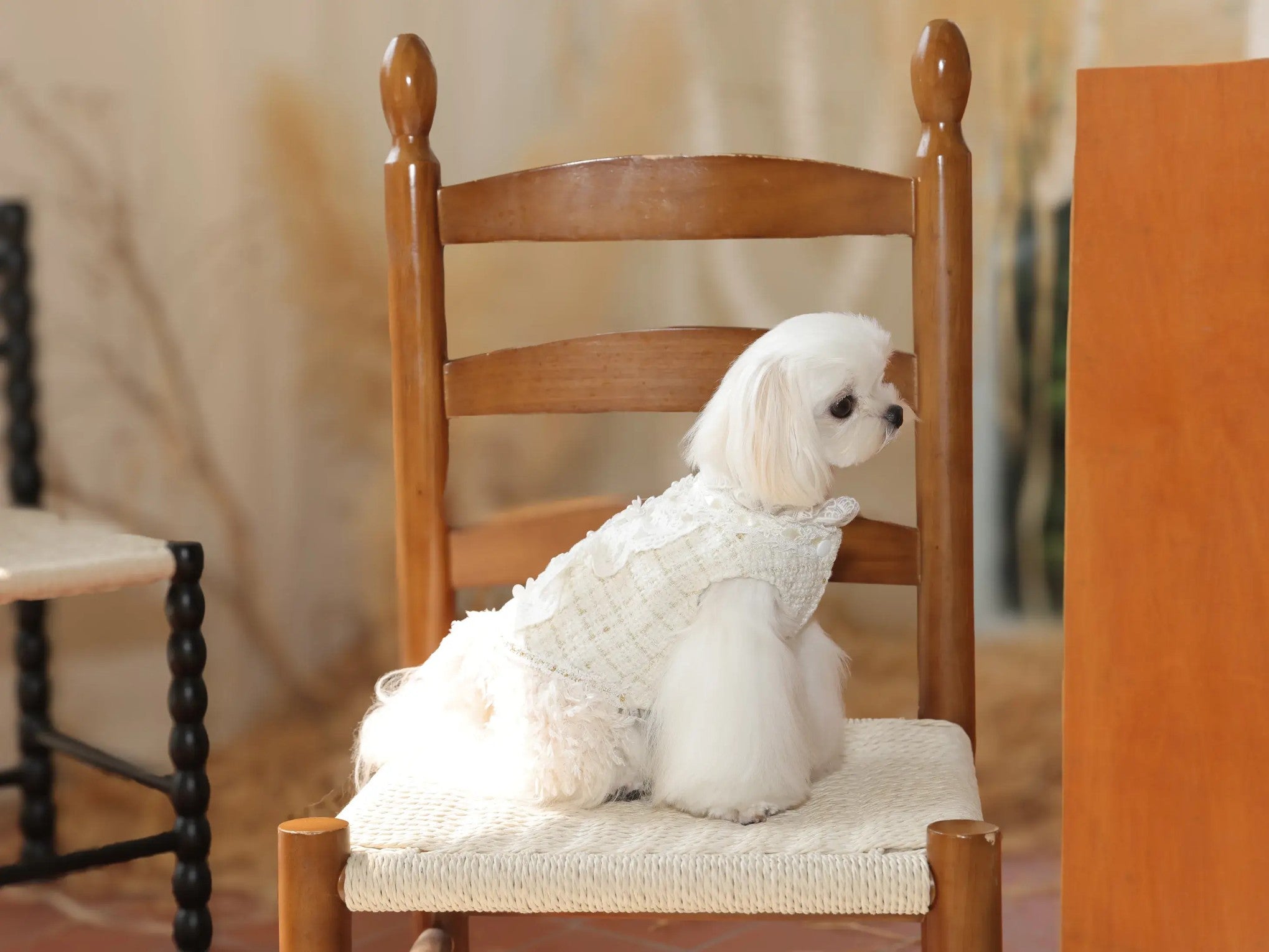 Some say elegance is found in the smallest details — a pearl glimmer, a bloom stitched with care. Inspired by a vintage jewelry box filled with delicate flowers and soft treasures, this tweed princess dress captures timeless sophistication for your little one. Made from premium polyester, its textured weave and pearl accents bring out a graceful charm that feels both classic and modern. Perfect for special outings, afternoon tea dates, or cozy café strolls, it’s a couture moment for dogs who deserve to shine with quiet grace.