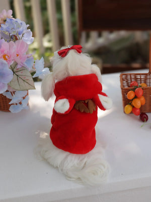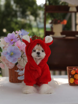 Korean Japanese Style Christmas Dog Coat - Red Warm Fleece Jacket for Small Puppies