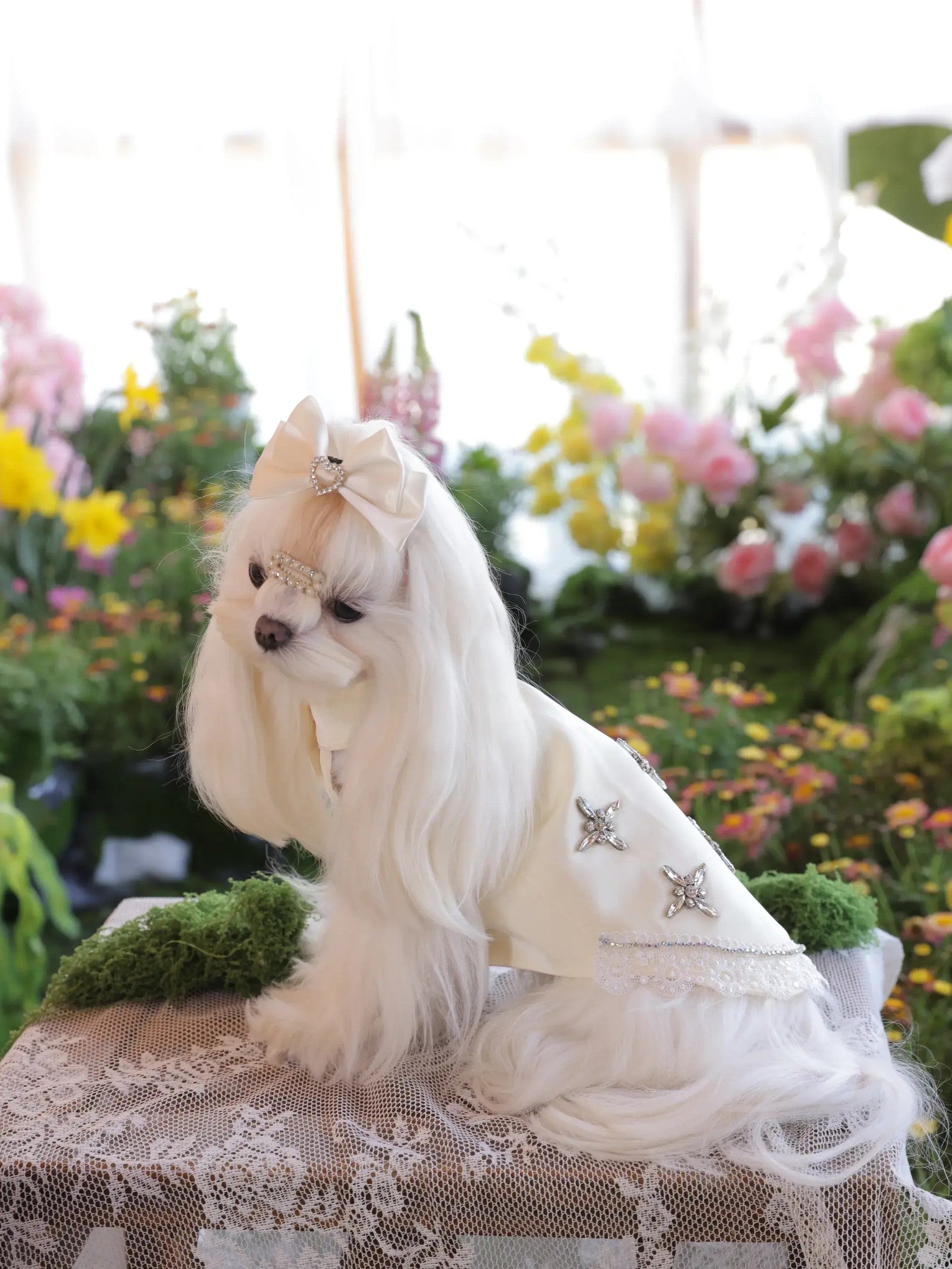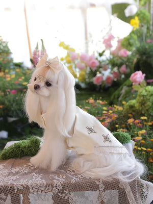 Picture your little star gliding into a softly lit room, her champagne-colored skirt sparkling with delicate rhinestones, catching every eye with understated elegance. Inspired by contemporary Japanese fashion, this premium polyester dress combines sleek lines with subtle embellishments for a refined, playful charm. Perfect for afternoon strolls, festive gatherings, or photo sessions, it transforms ordinary moments into stylish celebrations, letting your small dog shine like the gem she is.