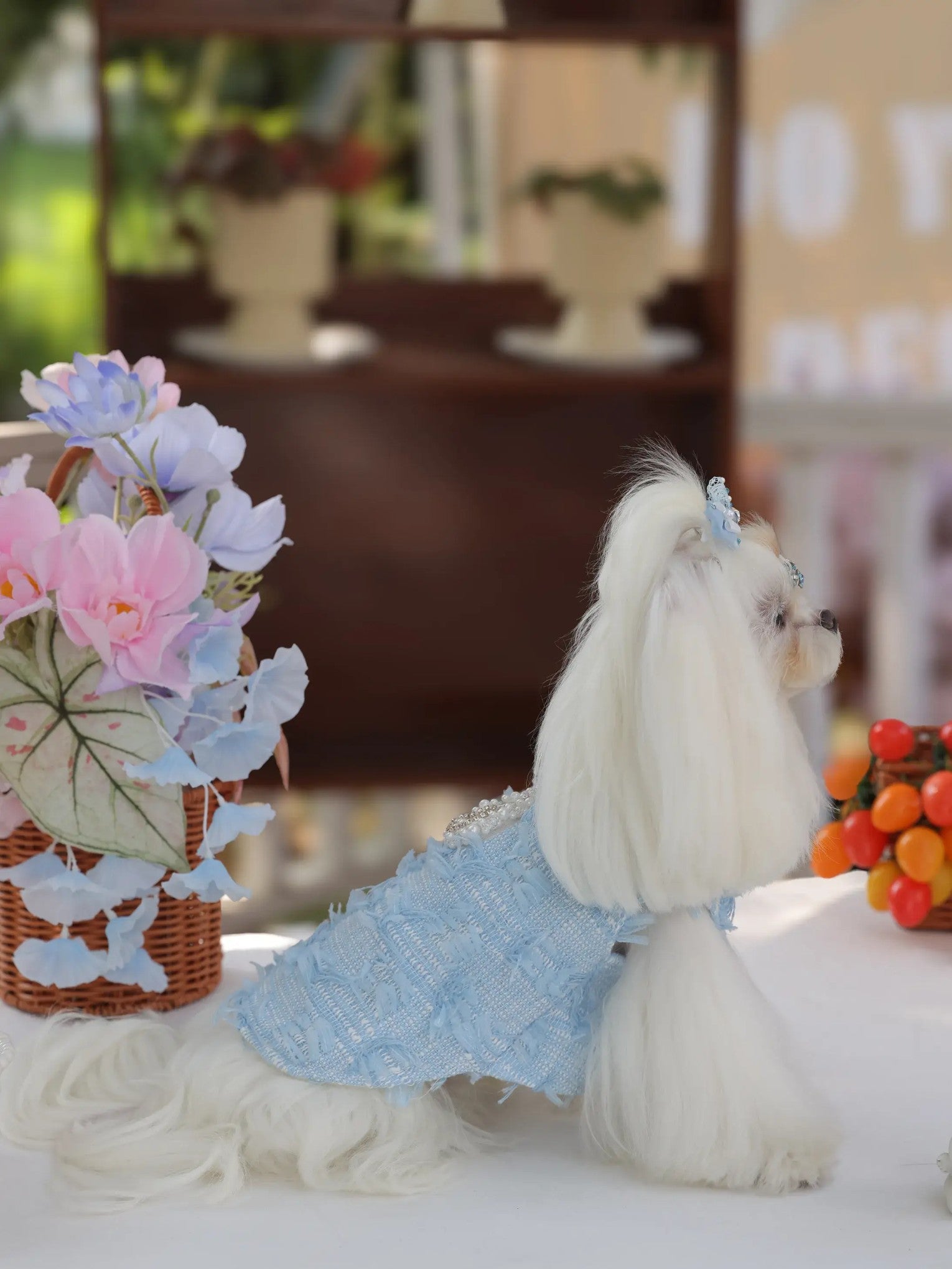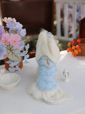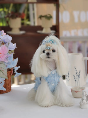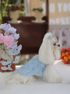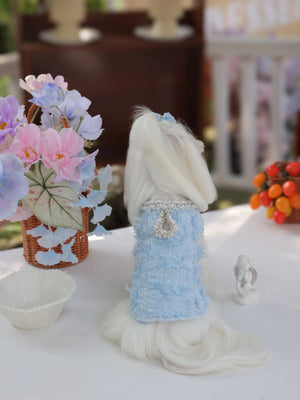 Under the gentle glow of the moonlight, your little darling glides gracefully in her misty blue jumpsuit, the soft polyester fabric catching every shimmer. Inspired by luxury princess fashion, this Lolita-style jumpsuit brings elegance and sophistication to small breeds like Shih Tzus, Pomeranians, and Toy Poodles. Perfect for evening strolls, garden parties, or special photoshoots, it transforms ordinary moments into enchanting memories worthy of a tiny royal.