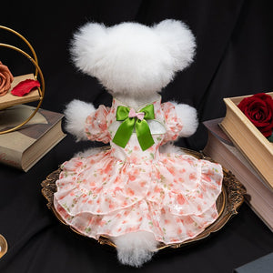 Pink Flower Fairy Dog Dress - Summer Anti-Shedding Skirt