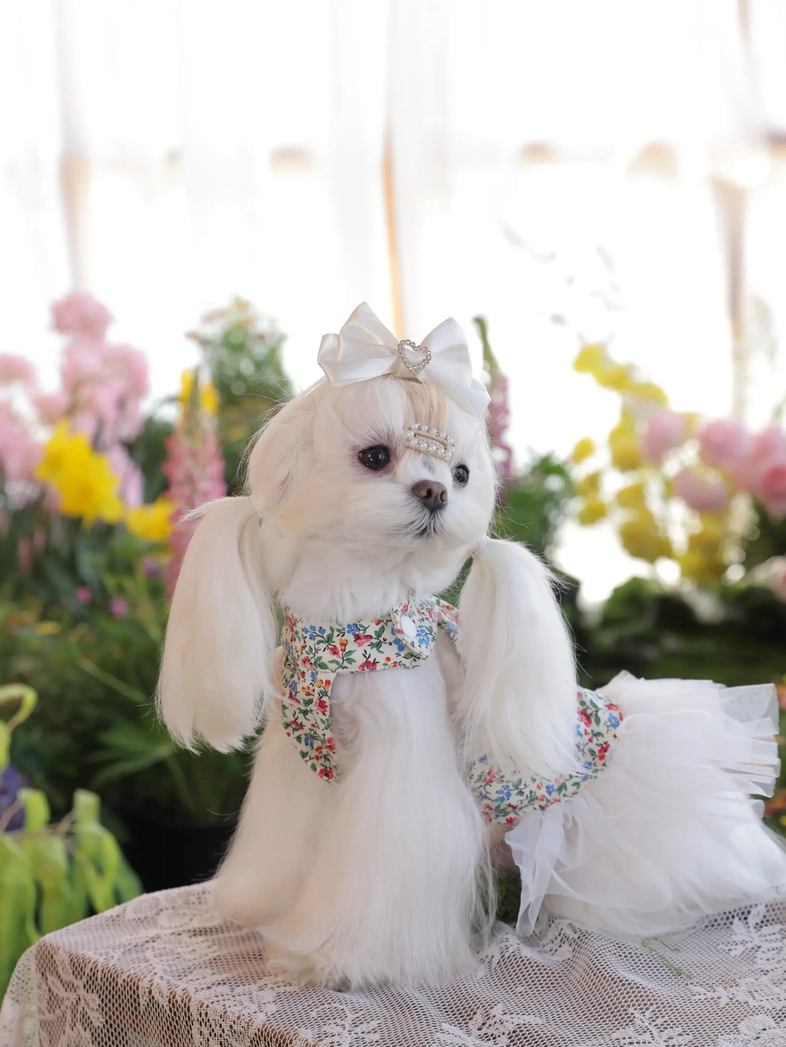 Sora Blossom Vest – Japanese Floral Cotton Dog Outfit for Small Dogs